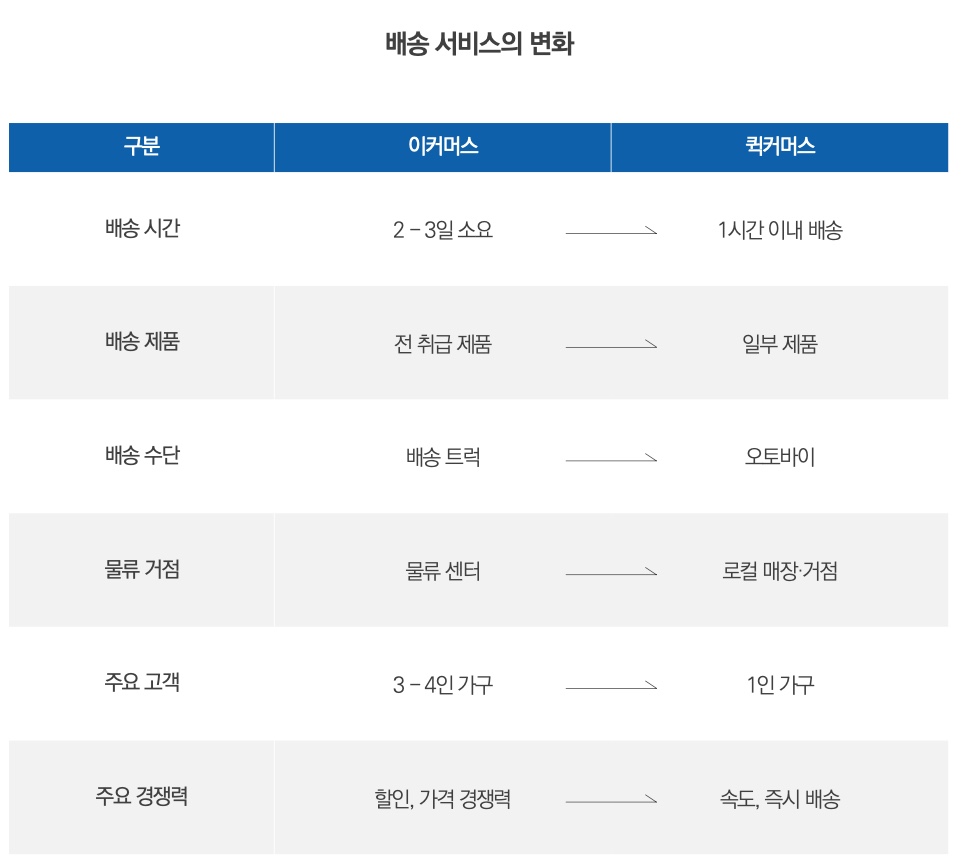 메조미디어의 퀵커머스 자료에 의하면 쇼핑몰의 배송 서비스는 아래와 같이 변화하고 있습니다.