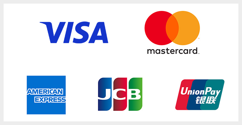 VISA, MASTER, JCB, Amex, UnionPay, Diners, Discover