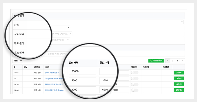 상품의 가격 정보, 재고 관리를 쉽고 빠르게