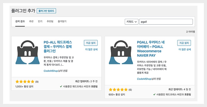 관리자 메뉴 – 플러그인 – 새로추가 – 검색 (심플페이 또는 코드엠샵 검색)