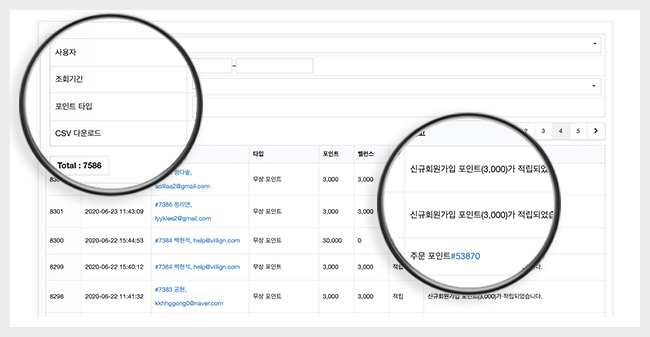 포인트 로그 관리의 편의성으로 관리자 업무를 줄여주세요.