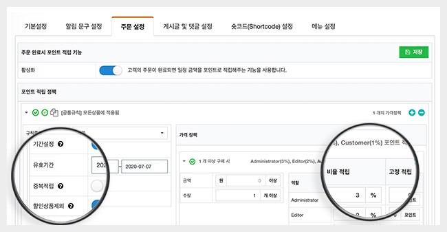 수량별 차등 포인트도 제공되며, 해당 기능 설정으로 다량의 구매 전환을 이끌어낼 수 있습니다.