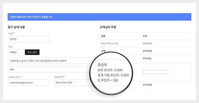 많은 쇼핑몰에서는 포인트 기능을 활용하여 신규회원 유치 및 재방문 고객의 재구매율을 이끌어내고 있습니다.