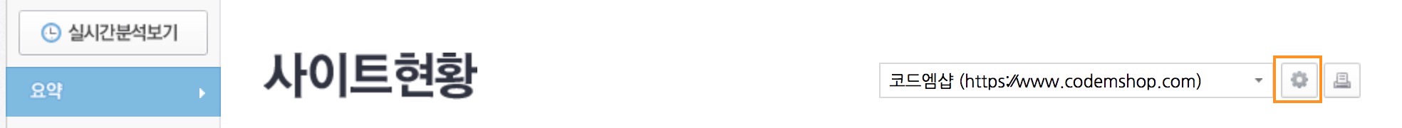 1. 네이버 애널리틱스 로그인 후 우측 상단의 설정창을 클릭 합니다.