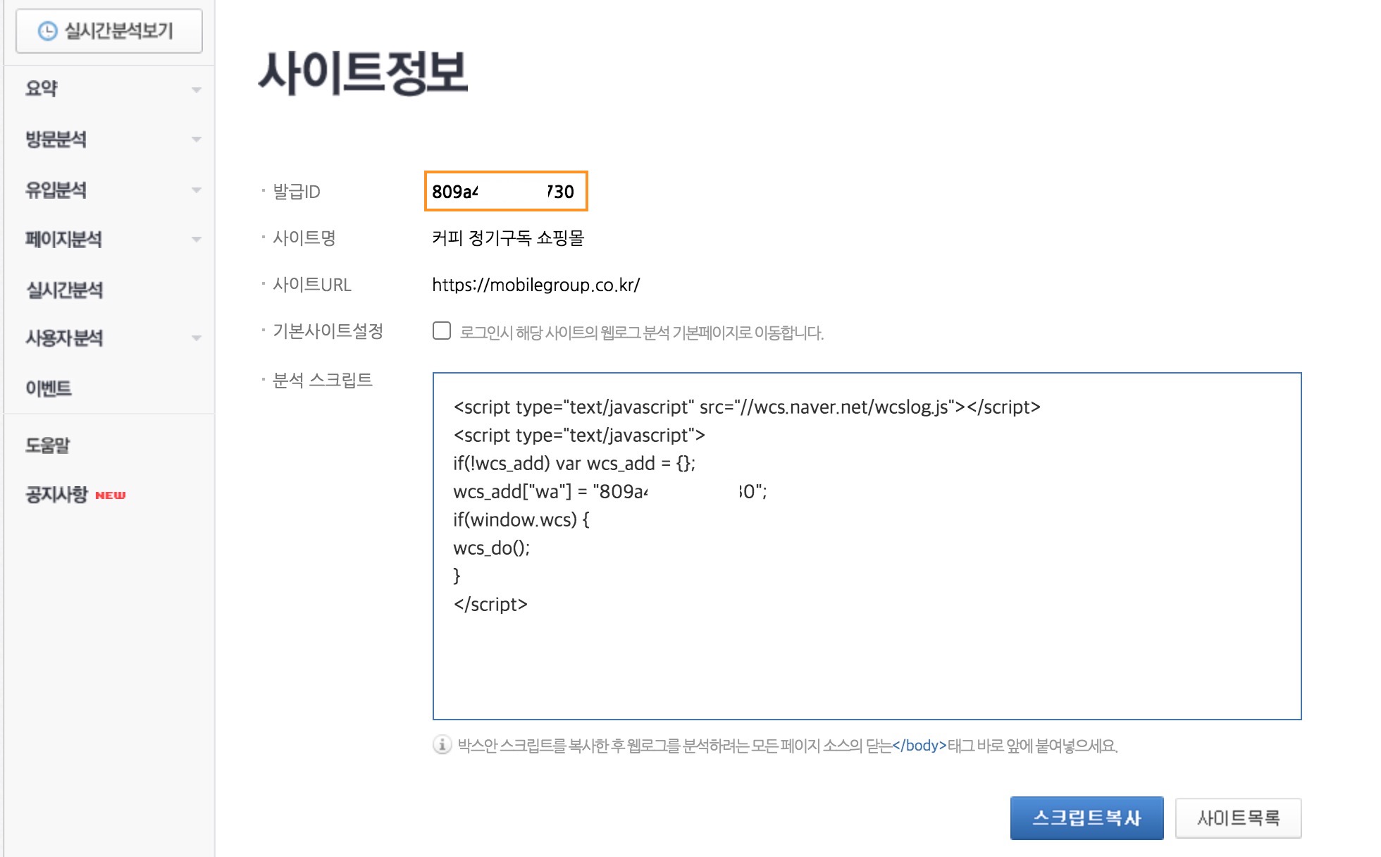 네이버 애널리틱스는 구글 애널리틱스 처럼 상세한 분석은 되지 않지만, 발급 ID 등록만으로