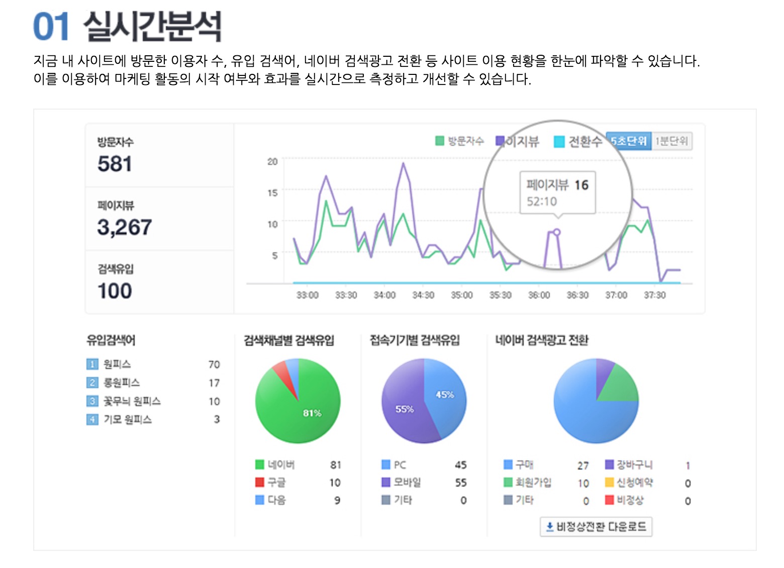 실시간 분석 – 내 사이트에 방문한 이용자수, 유입 검색어, 네이버 검색 광고 전환
