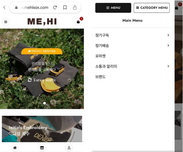 쇼핑몰의 판매 상품 및 상품 카테고리가 많은 경우 메뉴 구조가 위에서 아래로 떨어지는 메뉴 구조는 웹쇼핑에 불편함을 가지고 올 수 있어, 쇼핑몰에서는 모바일 메뉴가 좌우로 슬라이딩 되는 메뉴를 선택하시는 것을 권장 드립니다.