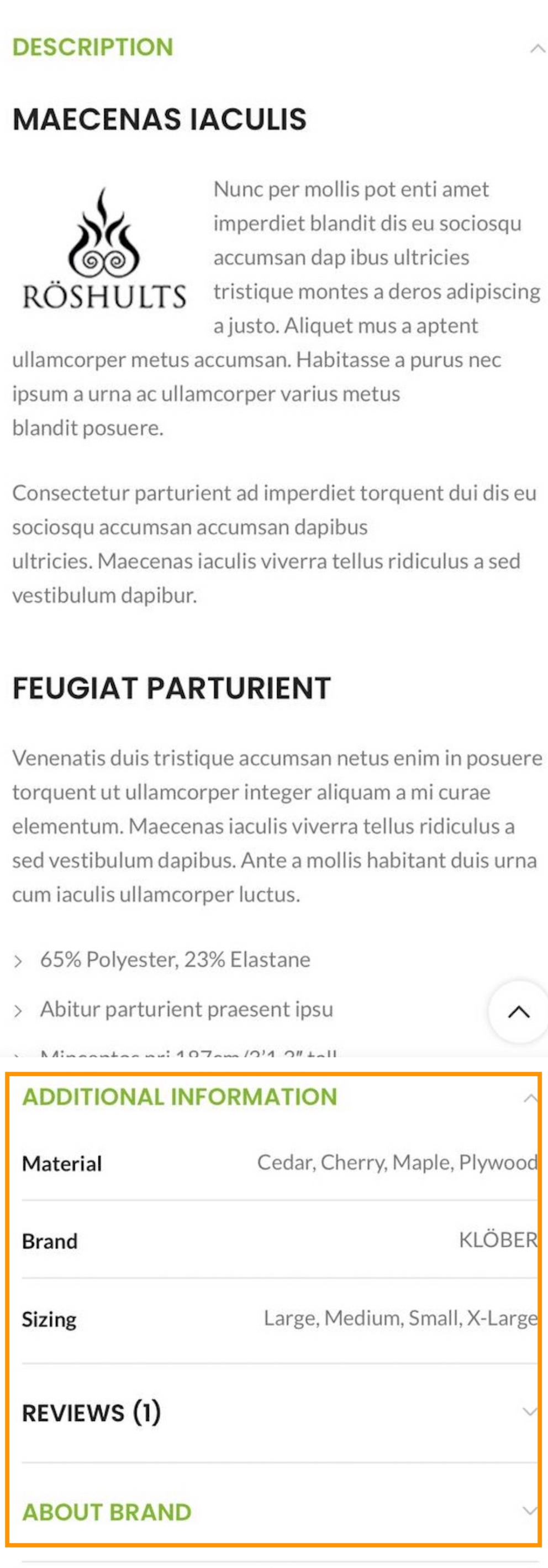 모바일에서 상품 상세 설명탭 (Description) / 추가정보 / 리뷰 등을 나눌 수 있으며, 모바일에서 해당 탭이 아래에 나오는지, 슬라이딩 형태로 제공되는지도 확인해야만 합니다.